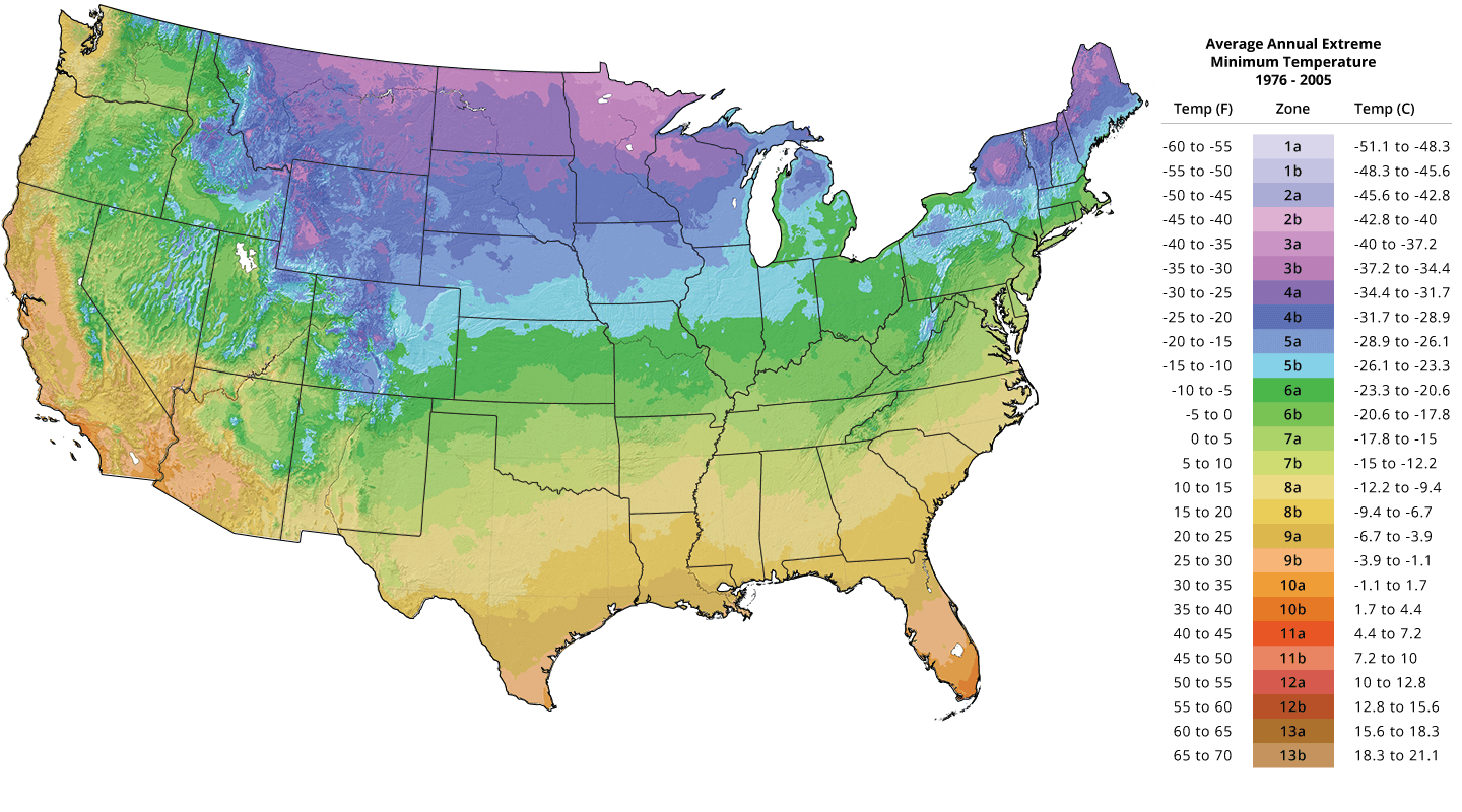 Depending on what plants you want to grow, you will need to research which zone your region falls under, and then research which of your favorite plants are sustainable in your zone. Below are the hardiness zone maps for both Canada and the USA.